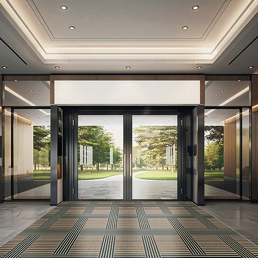 A rendszer újrahasznosítható anyagösszetétele és tartóssága támogatja a fenntarthatósági célokat, miközben elegáns, letisztult megjelenést és megbízható használatot biztosít az épületbejáratokban.