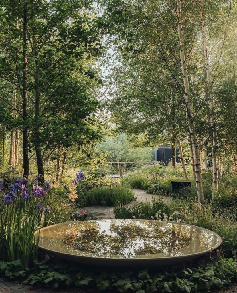 A koncepció alapja az érzékekre ható kert: földplasztikák, különböző textúrák, fényhatások, vízcsobogás hangélménye – mindezt úgy, hogy a szakmai üzenet egyértelműen a fenntarthatóság legyen.